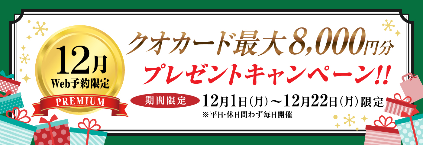 【WEB予約】12月限定最大8,000円分のクオカードがもらえるWEB予約プレミアムラリー開催!